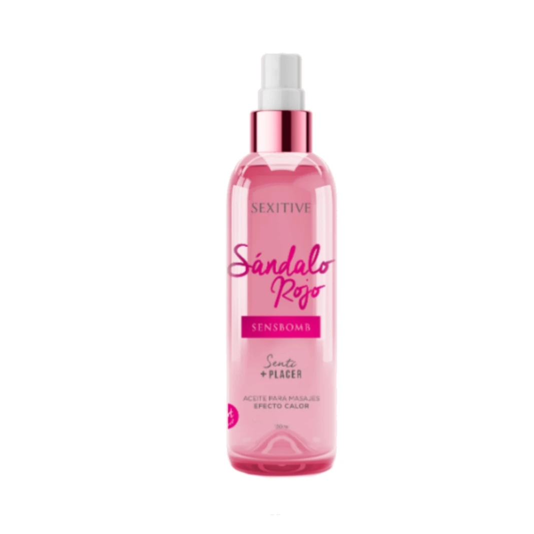 Aceite para masajes , con efecto calor. Con extractos afrodisíacos de origen natural, con sandalo. 130 ml. Para una experiencia provocadora, este aceite íntimo tiene efecto calor y logra que tus besos y sensaciones sean más apasionados. Usalo donde quieras besar y sentir besos.