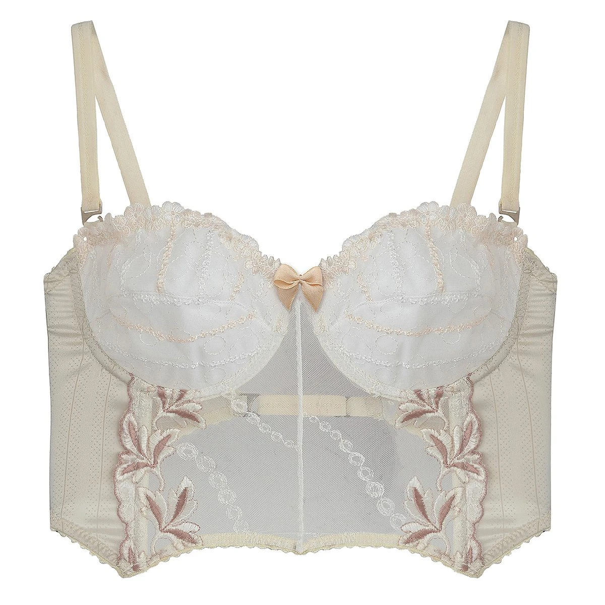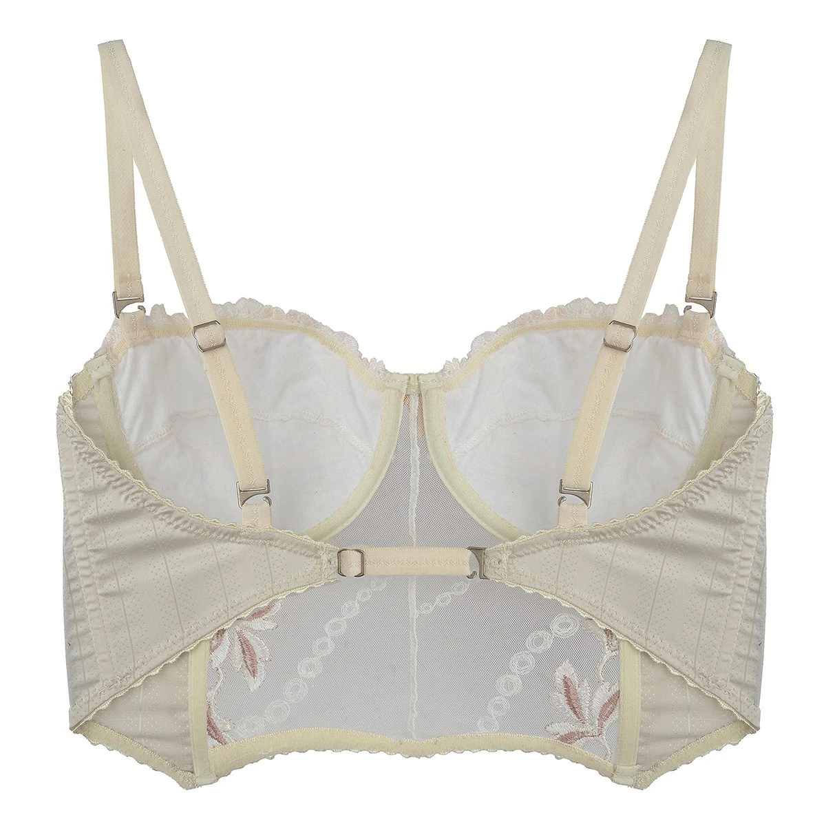 “Explora el lujo con nuestro bustier semi balconette, elaborado con fina puntilla, jacquard italiano Boselli y bordado suizo. Las tazas forradas lo convierten en una prenda perfecta tanto para interiores como exteriores. Los breteles y la espalda regulables garantizan un ajuste ideal, ofreciendo una combinación de elegancia y confort en cada uso.”
