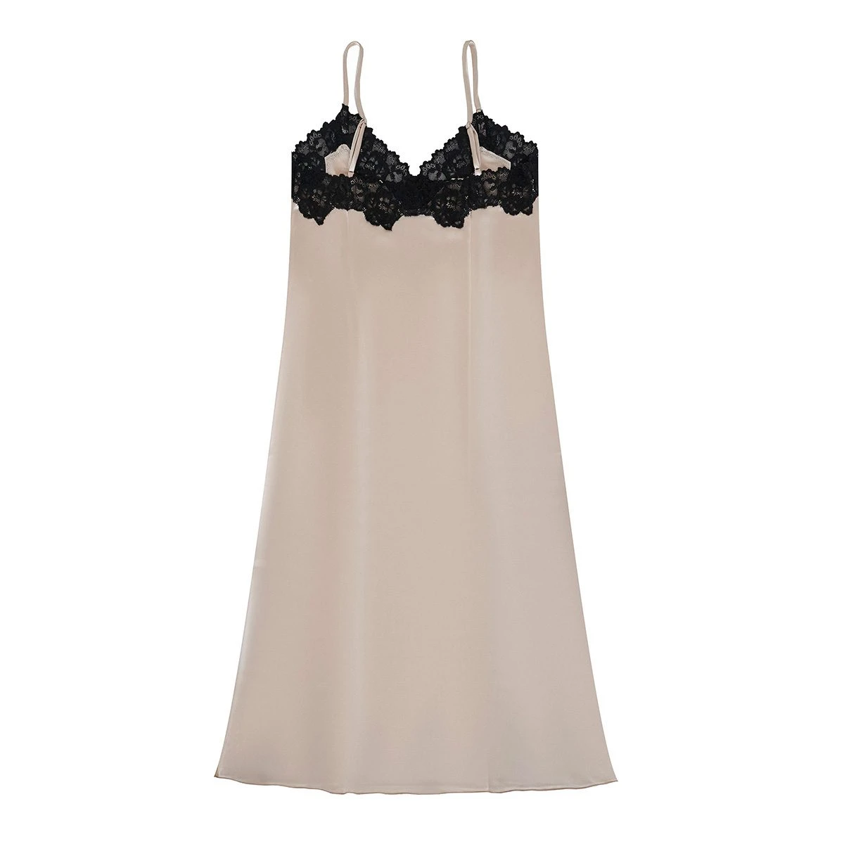 Sumergite en el lujo con nuestro camisón largo, elaborado en suave satén y delicada puntilla. Esta versátil prenda no solo realza tu intimidad, sino que también se transforma en un elegante vestido lencero.