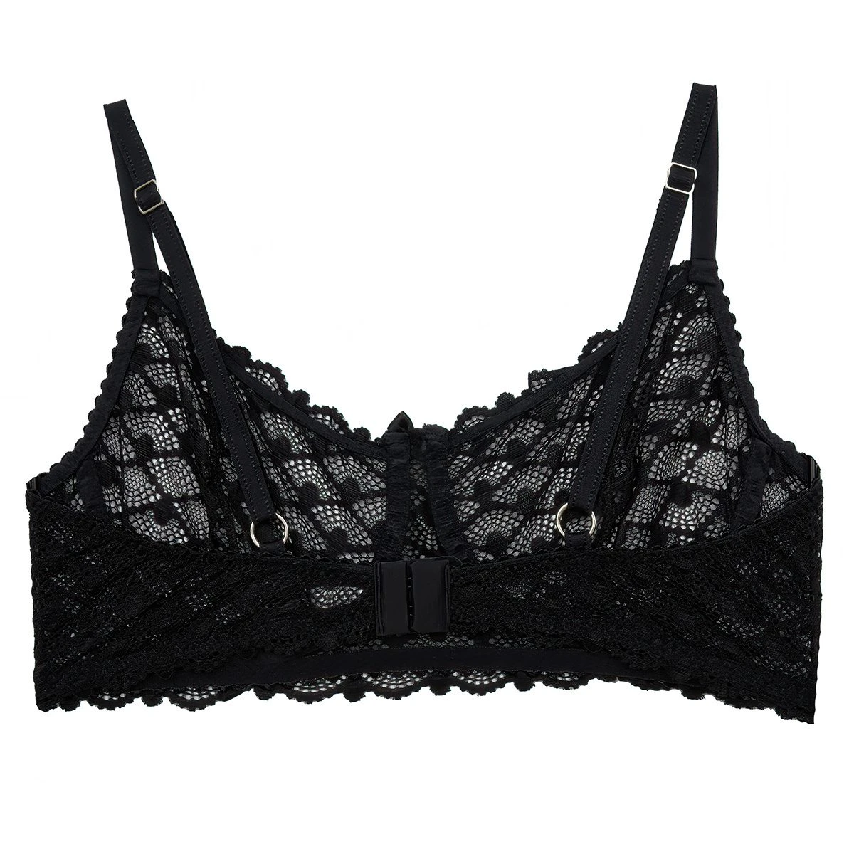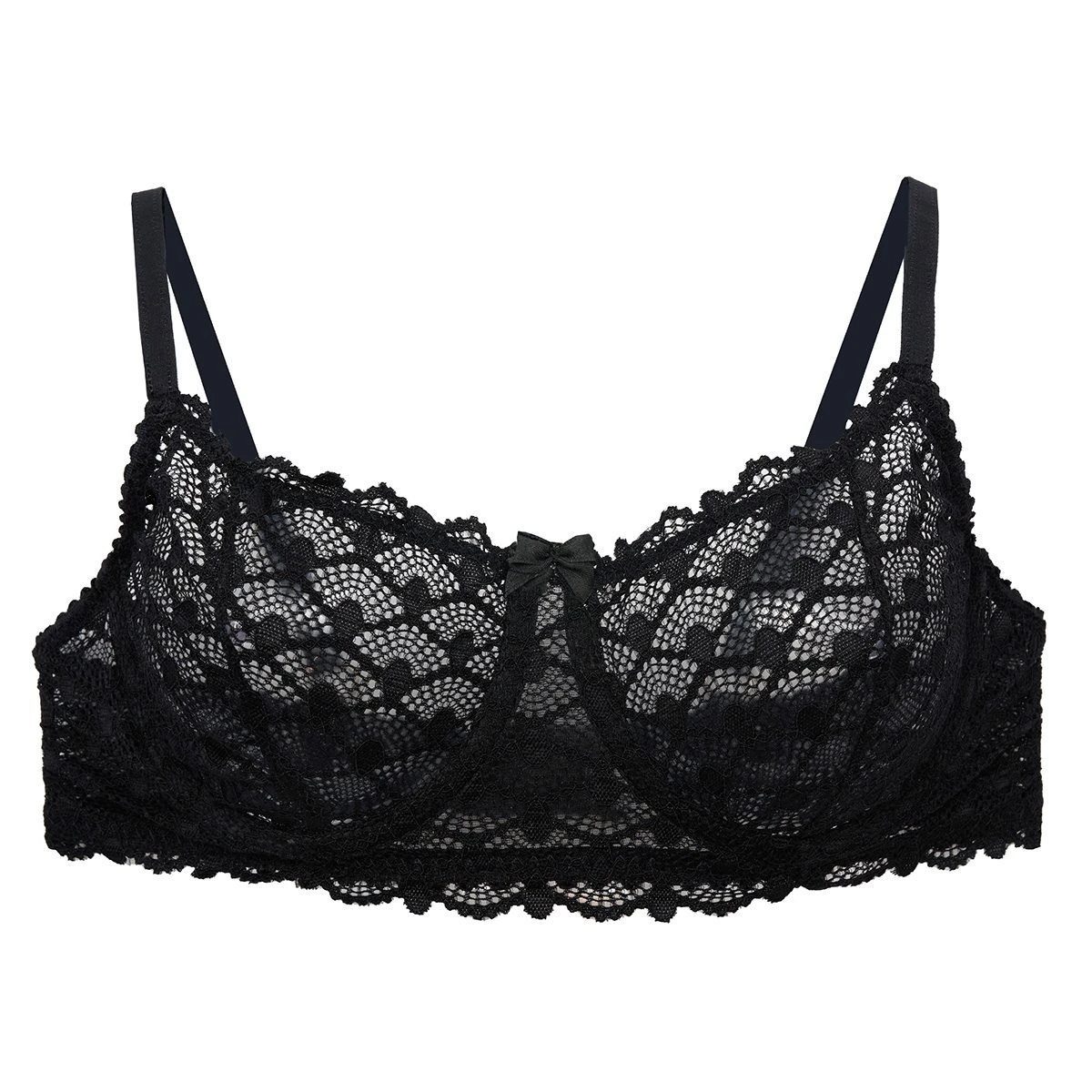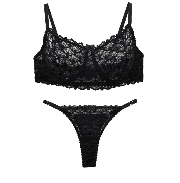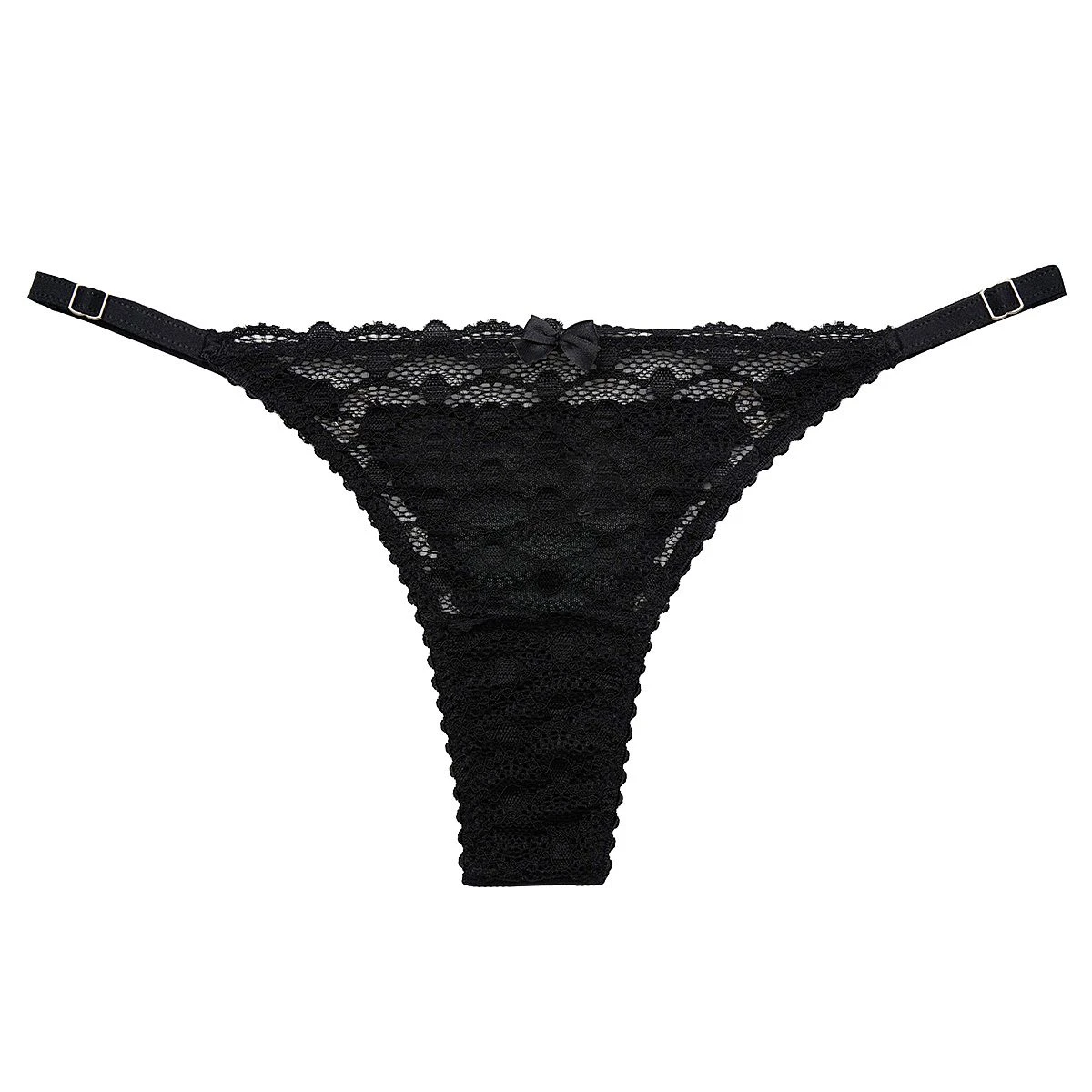 Conjunto de corpiño con arco confeccionado en puntilla. Microbikini regulable confecciona en puntilla.