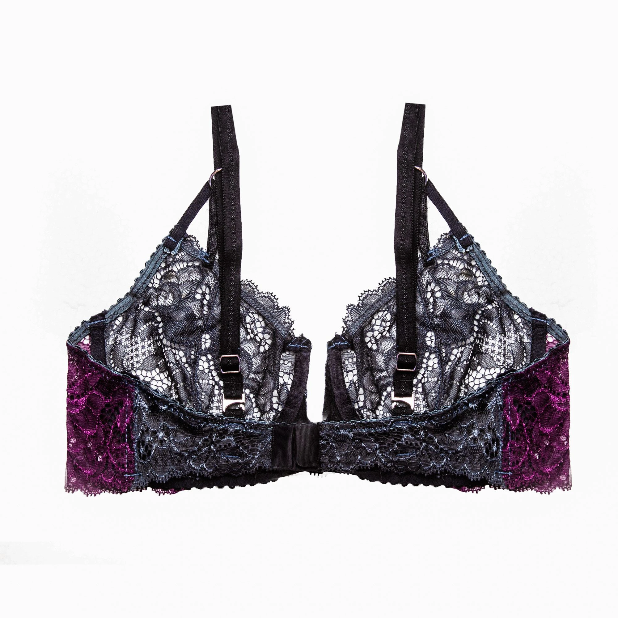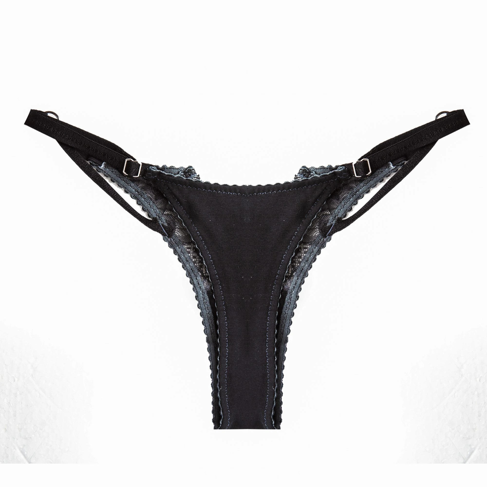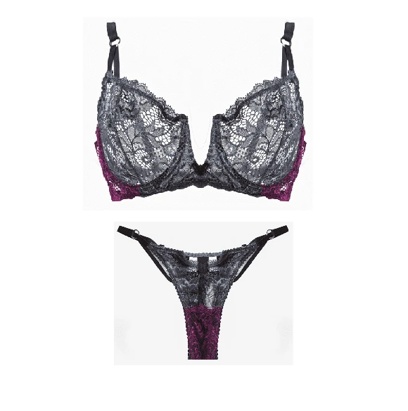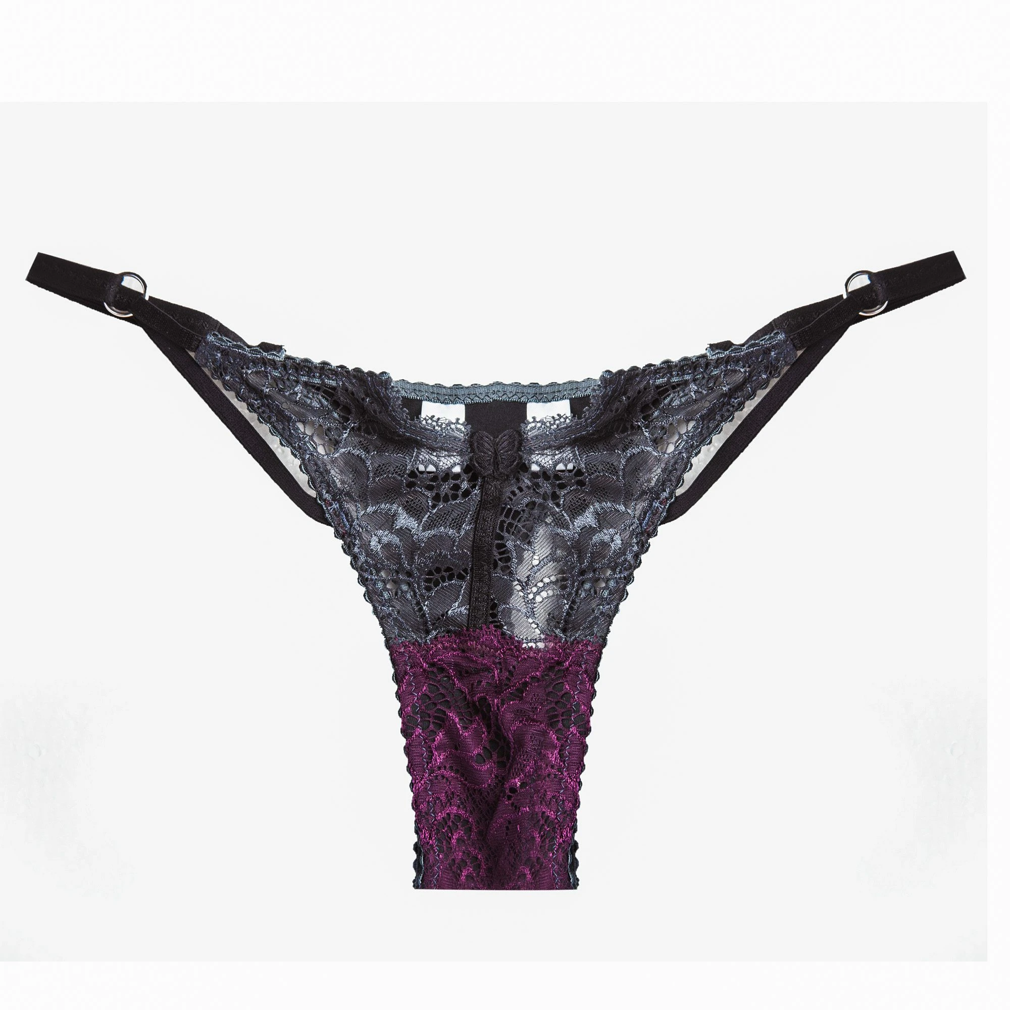 Conjunto de corpiño con arco confeccionado en puntilla. Microbikini regulable confecciona en puntilla.