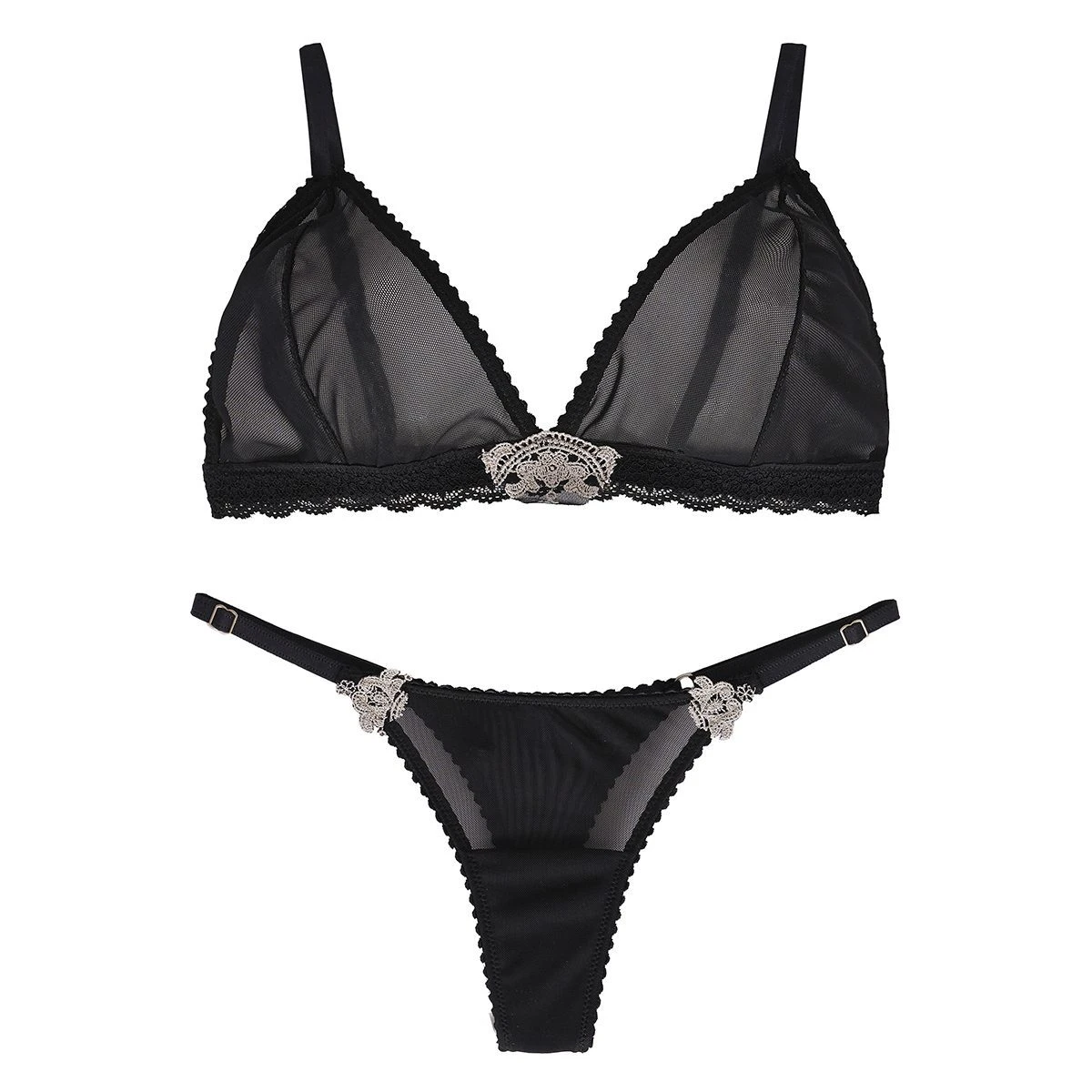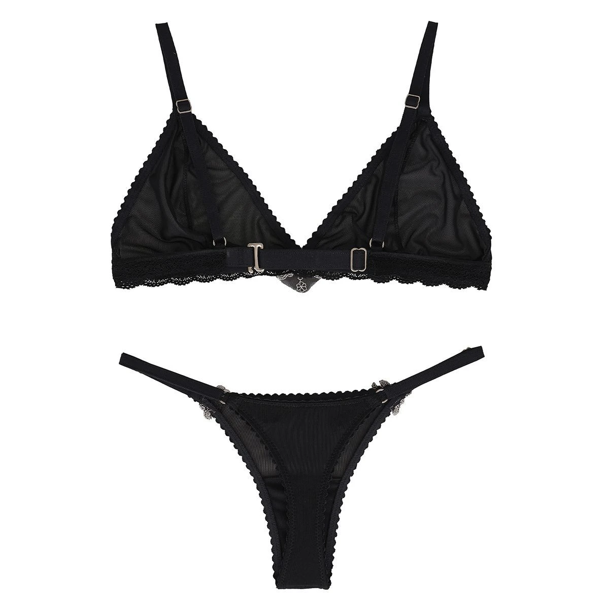 “Sumérgete en la delicadeza con nuestro triángulo de espalda regulable, confeccionado en microtul que resalta su exquisita transparencia. Equipado con breteles ajustables para un ajuste perfecto. Los detalles de puntilla y apliques de guipur en el bajo busto añaden un toque de elegancia única. La parte trasera de la microbikini presenta un estilo less, fusionando sensualidad y comodidad en cada uso.”