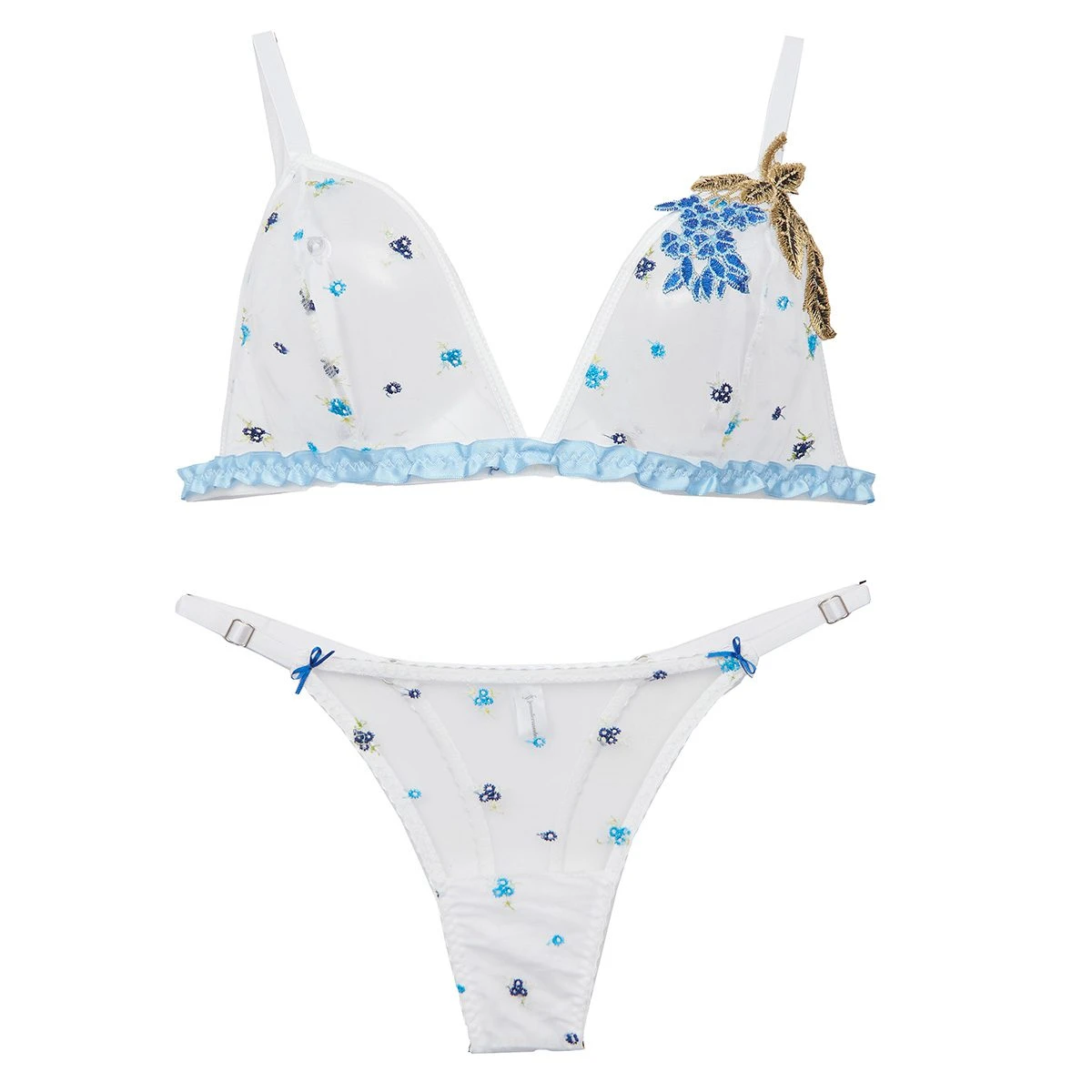 Tanto el corpiño, como la microbikini, cuentan con apliques bordados.