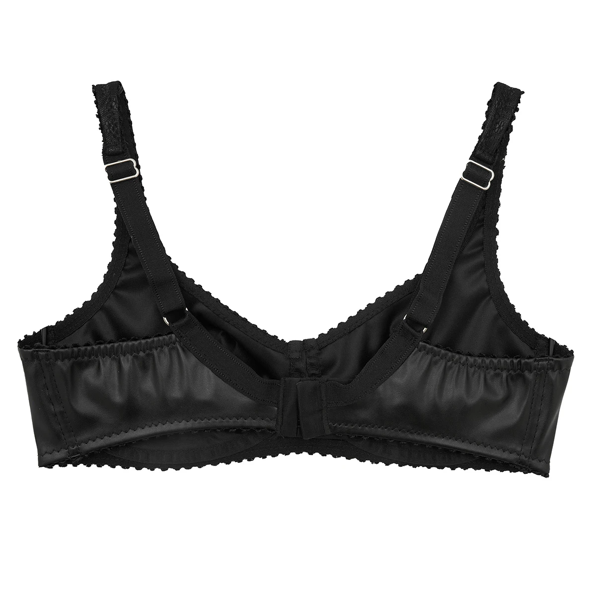 Este conjunto combina ecocuero y tul para un look audaz y elegante. El soutien sin arco brinda comodidad con un diseño que destaca, mientras el broche de velour y los breteles regulables aseguran un calce perfecto.