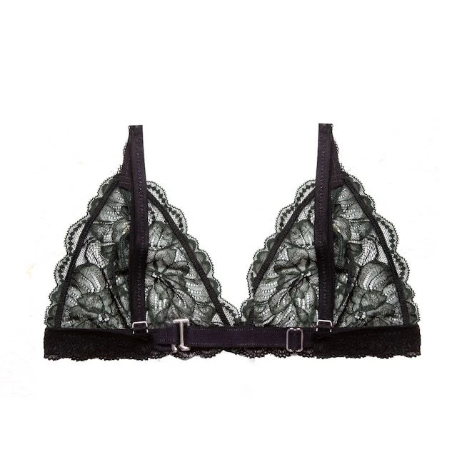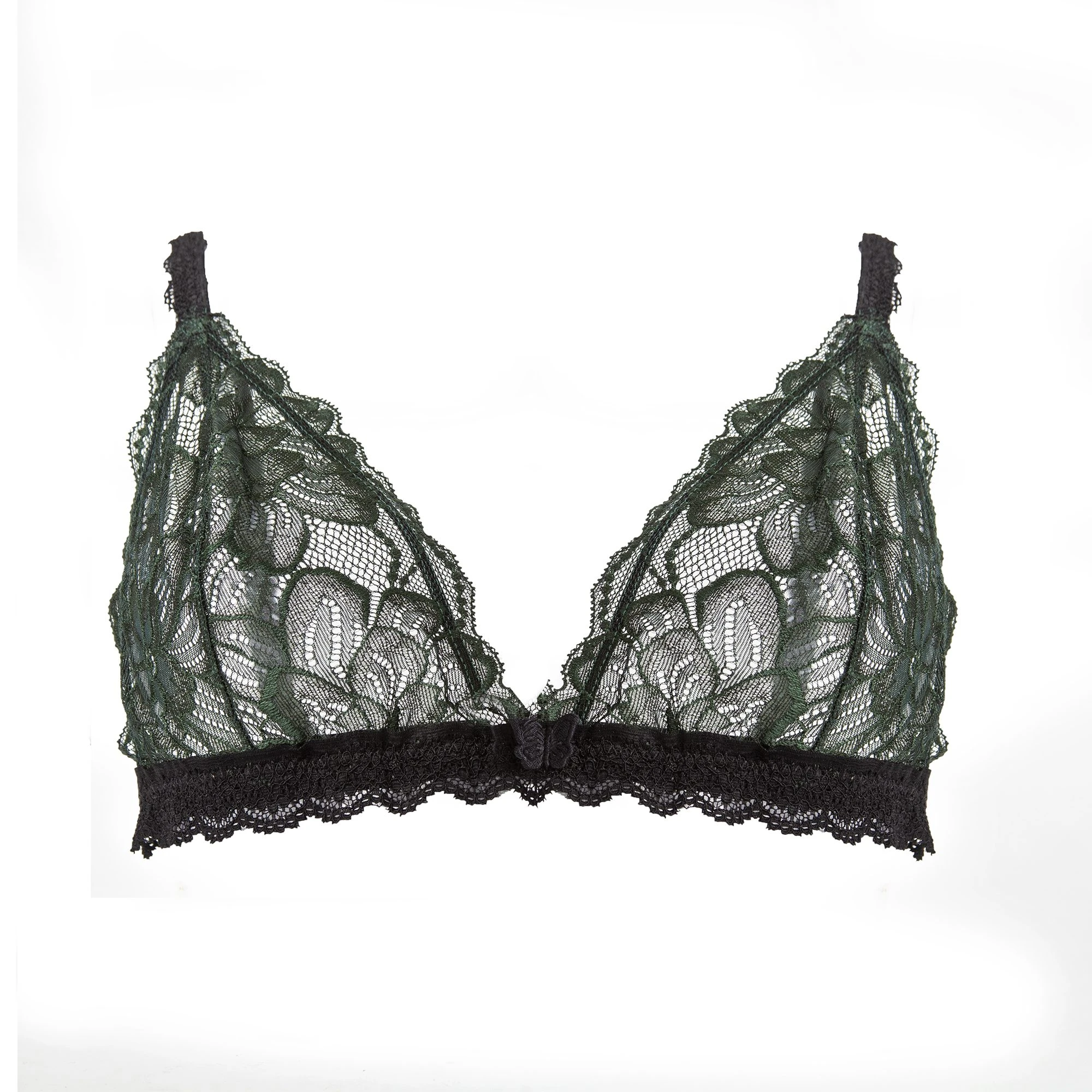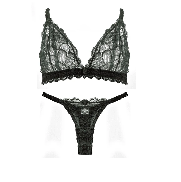 Conjunto de corpiño sin arco de encaje, los breteles son regulables. Microbikini less regulable, confeccionada en encaje.