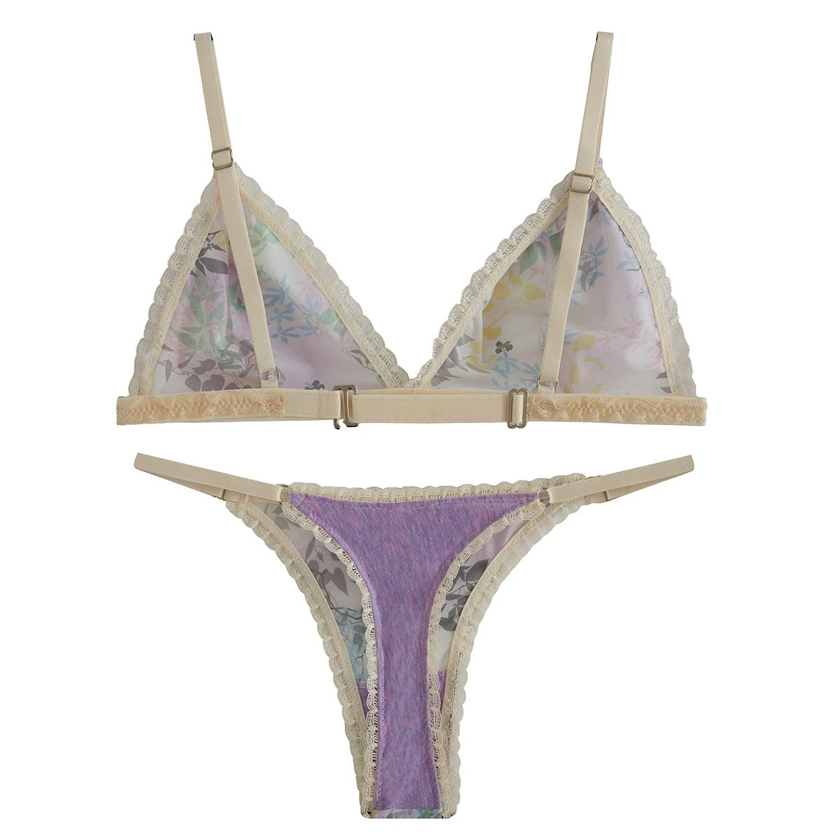 Triangulo y micro regulable de billight. Es un genero que se destaca por su delicada suavidad y comodidad. Es un conjunto ideal para usar algo comodo y delicado. Tiene breteles regulables. En el bajo busto del triangulo tiene una puntilla. El trasero de la microbikini es less.