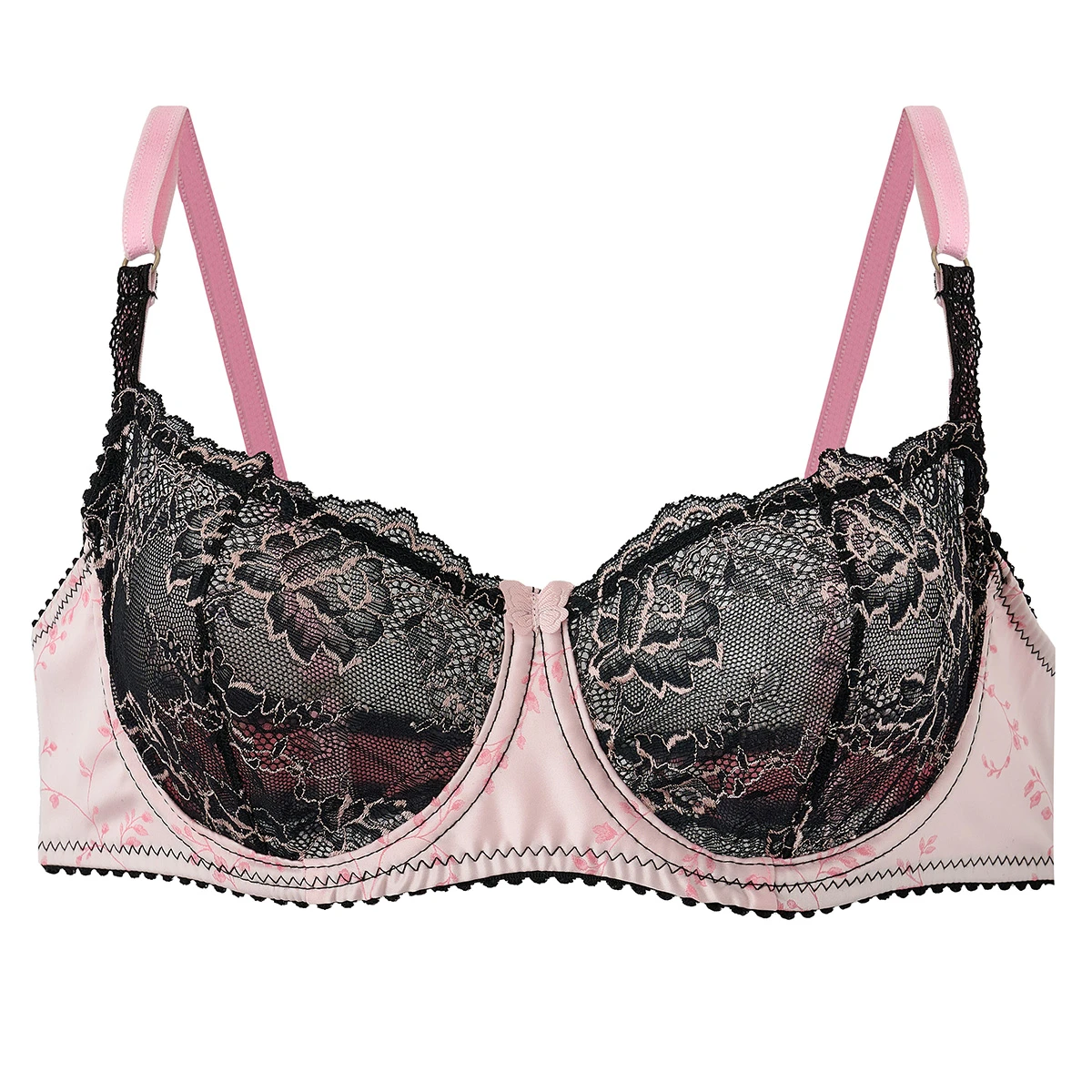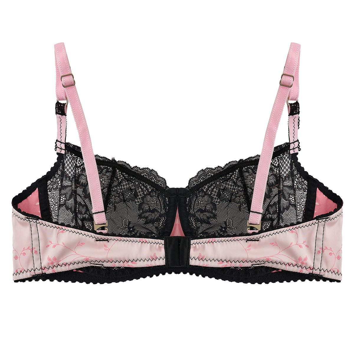 “Corpiño con arco en puntilla bicolor y jacquard italiano Boselli, con sisa alta y breteles regulables para un calce perfecto. Las coletas con ballenas añaden soporte y sofisticación.”