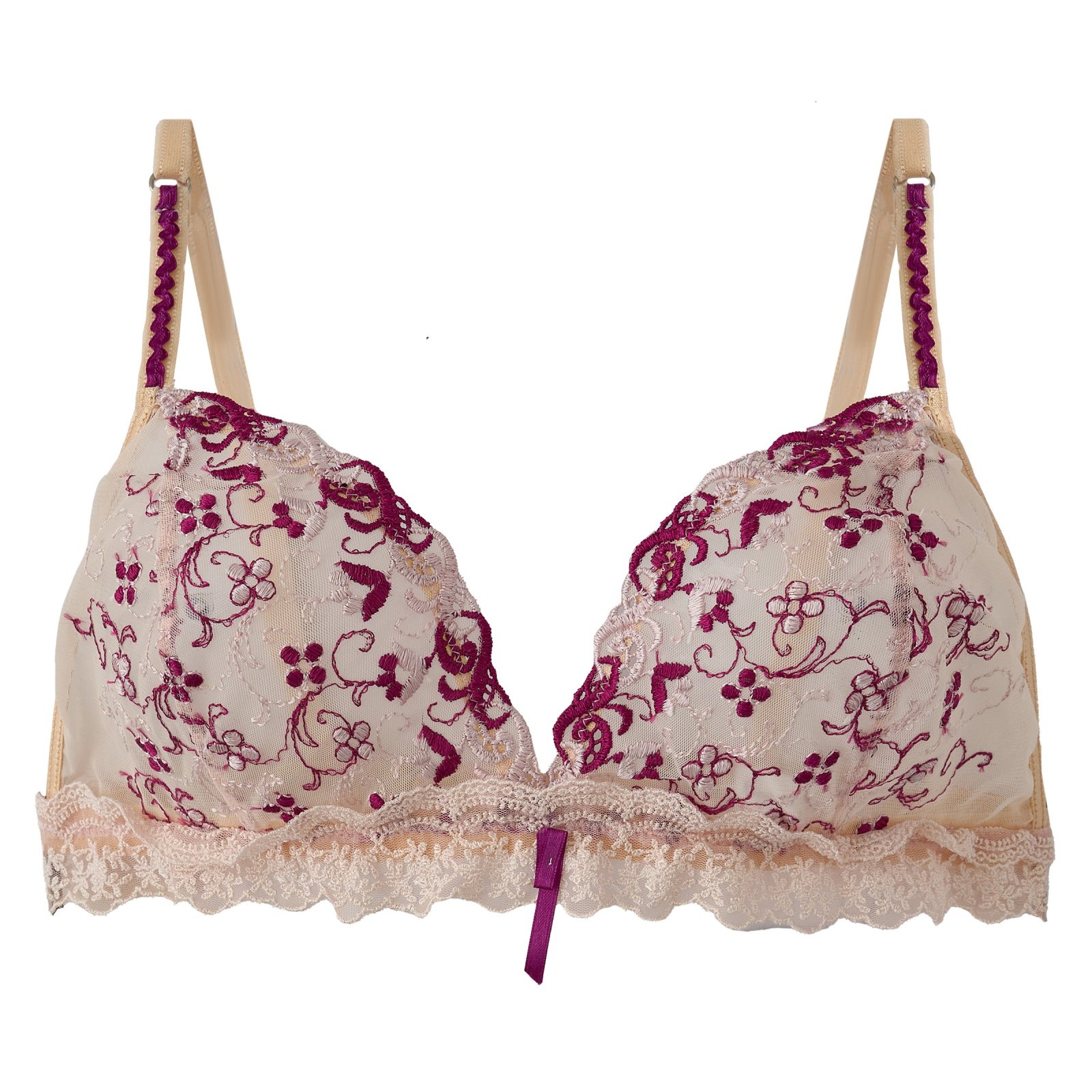 Este corpiño sin arco en tul bordado de Broderie suizo y un delicado galón en el bajo busto es puro encanto. Con detalles de cinta de raso y breteles regulables, combina estilo y suavidad para una experiencia femenina inigualable.