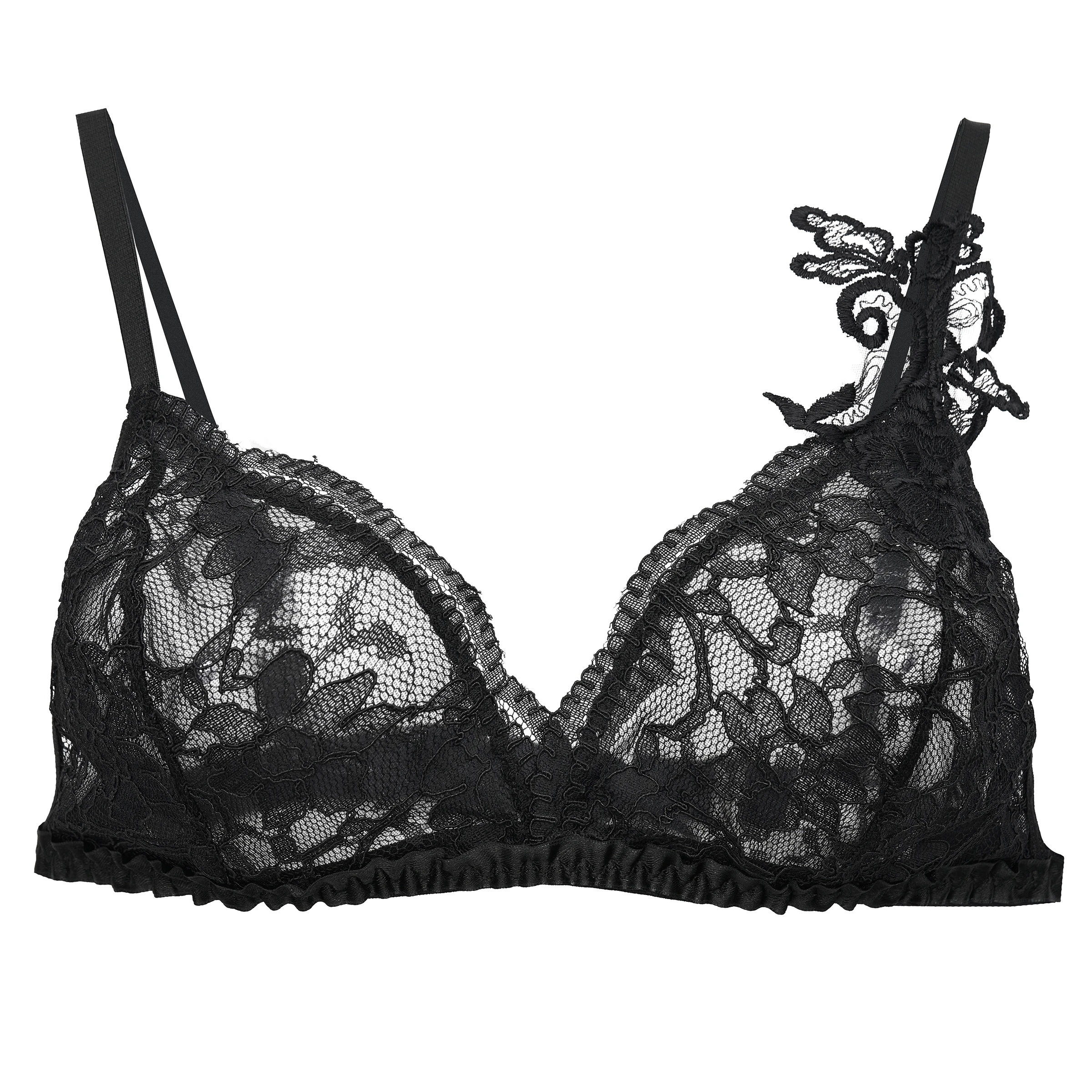 Corpiño sin arco con delicado encaje y aplique que realza tu femineidad con comodidad. Ideal para todos los días o para sentirte especial. ¡Sumalo a tu cajón de lencería!