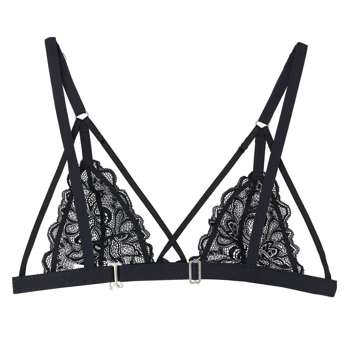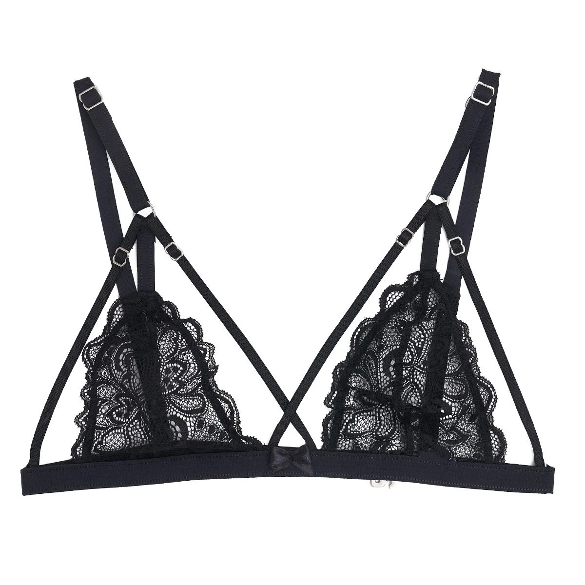 Soutien triangulito confeccionado en puntilla bordada con vivos en a tono en terminaciones y breteles regulables
