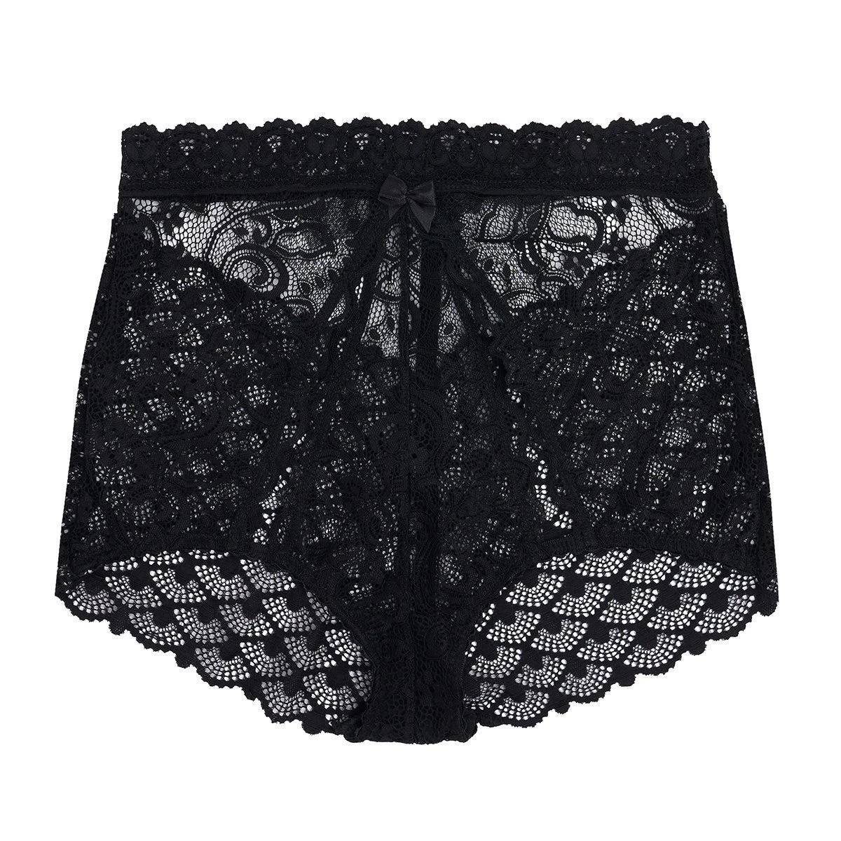 Culotte tiro alto confeccionado en encaje y puntilla con terminaciones en vivos de igual color.