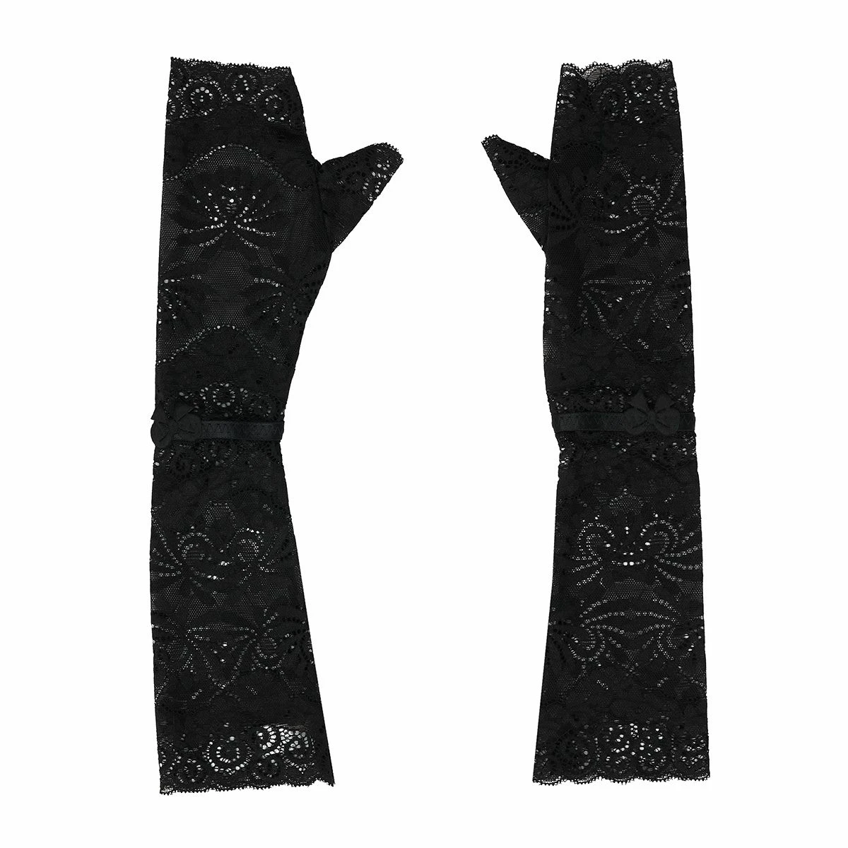 Guantes largos confeccionados en puntilla , delicado detalle de moñito, ideal para completar tu estilo sexy JF y también para salir con un outfit único.