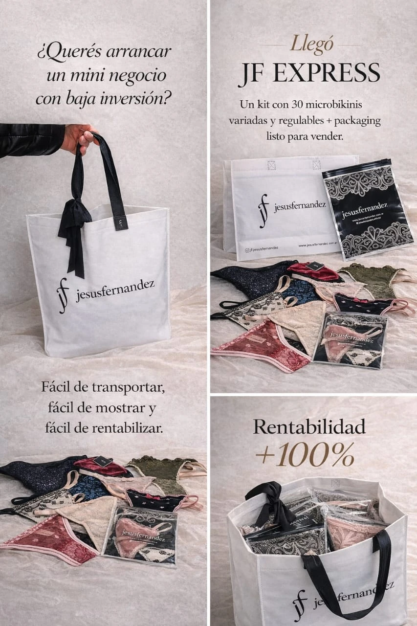 El kit consta de 30 microbikinis variadas, 30 bolsitas zip, 1 de tela.