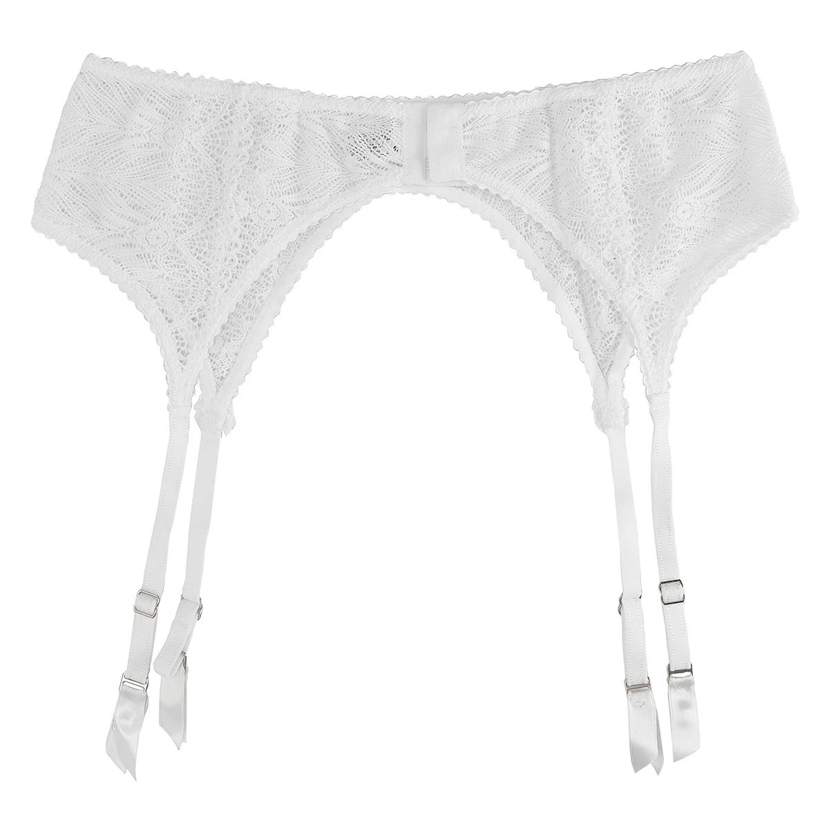 “Elegancia y sensualidad en cada detalle. Nuestro delicado portaligas de puntilla ha sido diseñado para realzar tu feminidad con un ajuste perfecto. Su broche de velur de 3 posiciones se adapta a tu silueta, mientras que sus breteles regulables y ganchos permiten combinarlo con nuestras exquisitas ligas de puntilla. Un complemento sofisticado para sentirte segura, irresistible y completamente radiante.”