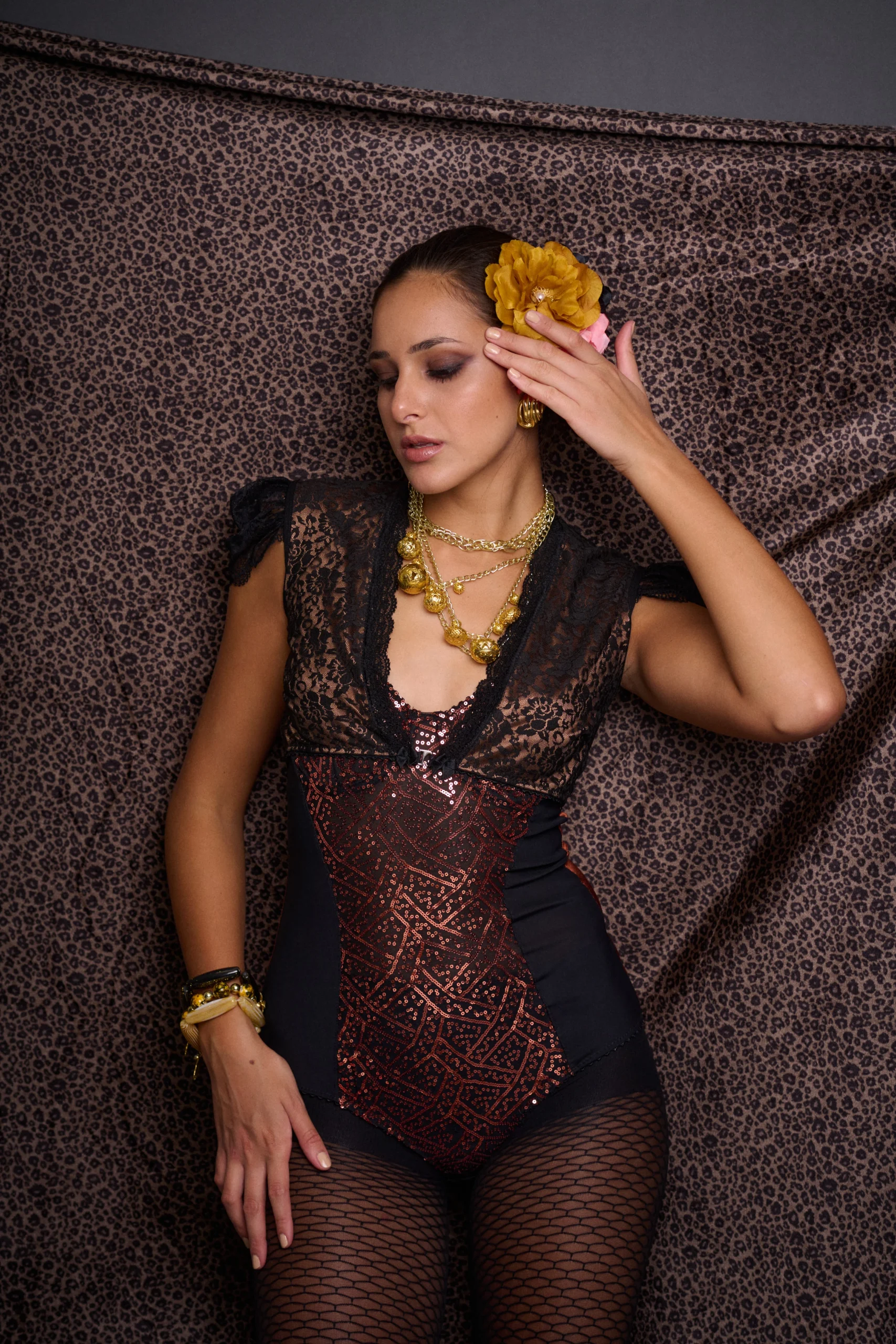 Llevá tu look al próximo nivel con este top de satén y encaje. ¡Puro fuego!