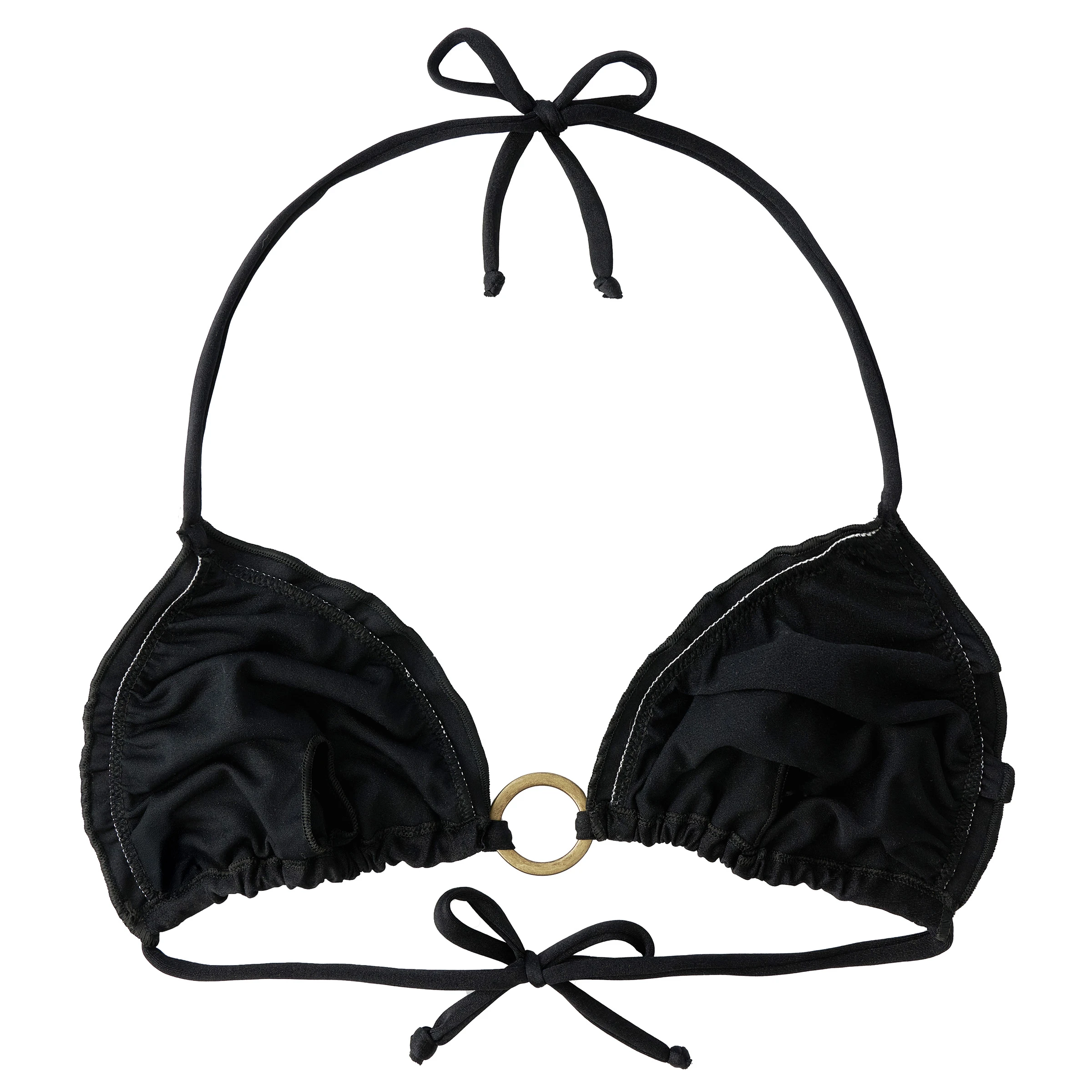 TRIANGULO TRAJE DE BAÑO CON TERMINACIÓN EN RULOTÉ Y DETALLE DE ARGOLLA EN TONO BRONCE