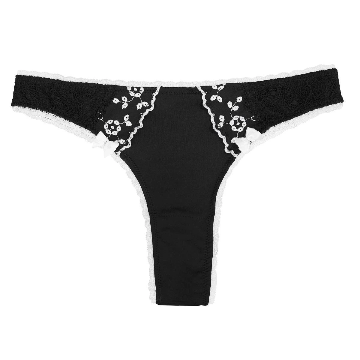 Vedetina less confeccionada en microfibra bordada y lycra. A modo ornamental cuenta con dos moñitos.